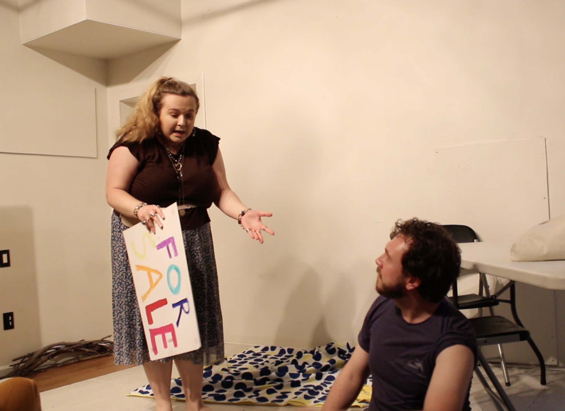 Jane, a free spirit, has brought her dining set, an old table and two old chairs, into the park to sell it. In doing so, she’s unfortunately put it right on top of nonfiction writer Clem’s meditation spot, which he needs, because he is wound up tight. Real tight. When Clem can’t get his daily zen going because Jane and her dining set are in the way, a battle of the wills ensues.